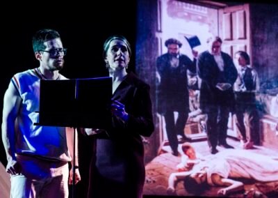 Más de una década después, rodeados de libros de historia, ensayos, novelas, obras de teatro, videos y música sobre el tema, y de diarios e impresos de aquella época acopiados en todo este tiempo, reparamos en que se cumplirían ciento cincuenta años de aquel terrible episodio de nuestra historia. ¡Aniversario!, ya no cabían más excusas, era tiempo de escribir la dramaturgia, componer la música, imaginar a sus intérpretes y hablarles, filmar, fotografiar, grabar, diseñar vestuario… Estábamos inmersos en ese proceso cuando el planeta -no ya nuestro país ni nuestra ciudad- sucumbió ante una nueva epidemia. El destino quiso la redondez numérica del siglo y medio para nuestra ciudad, entre aquella de fiebre amarilla y la actual pandemia de covid-19. La lenta cocción de una década de aquella idea ya sabía rancia. Nosotros vivíamos nuestra propia y actual peste. El pánico que leíamos en aquellos porteños ya no nos era ajeno y debía entrar en la ópera.
